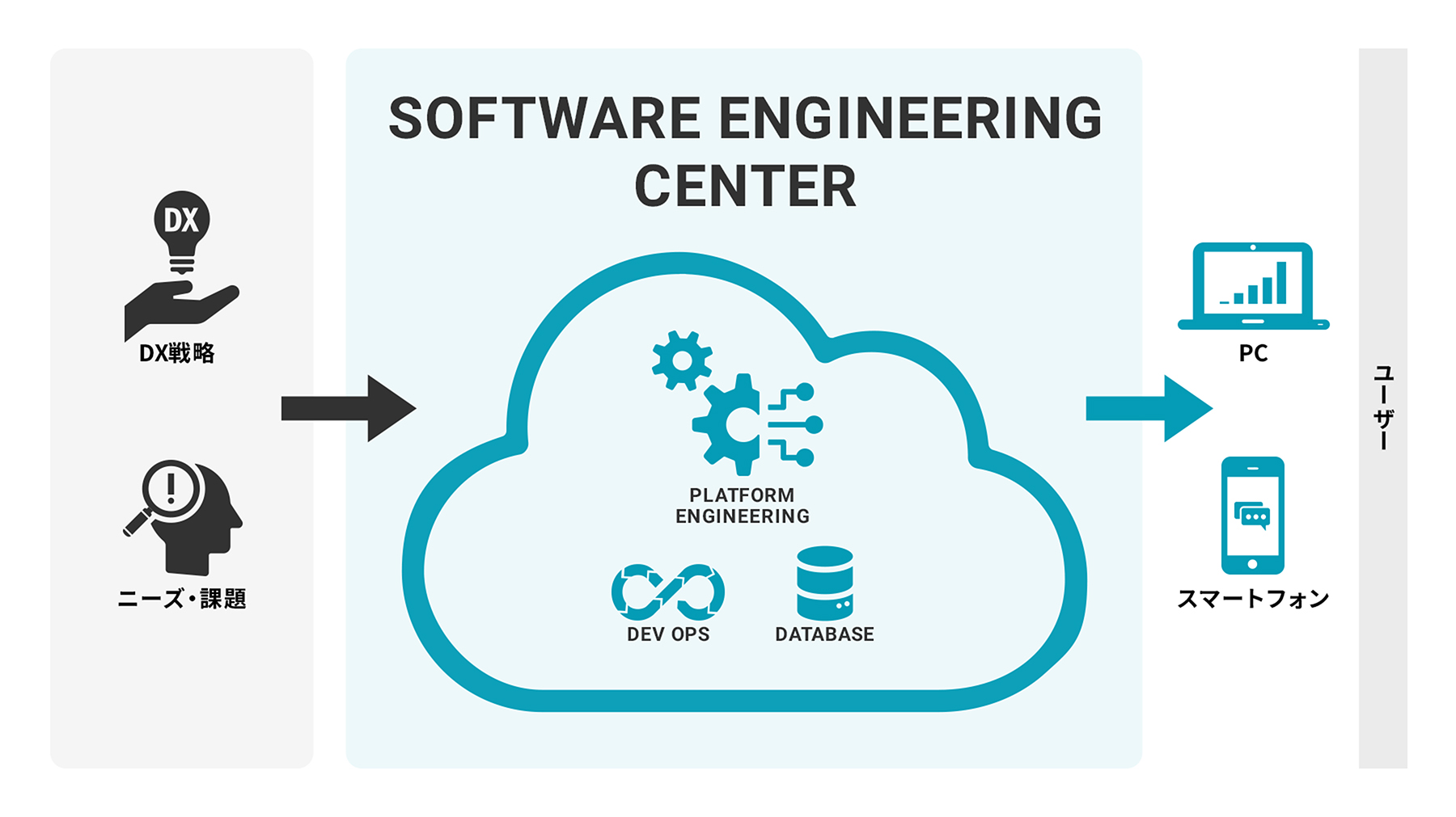 ソフトウェアエンジニアリングセンターでは、常に最適なテクノロジーを取り入れ、システム開発・アプリケーション開発・インフラ構築の全体最適を実現。ビジネスに新たな価値をもたらすため、エンジニアリングの力で変革を推進します。